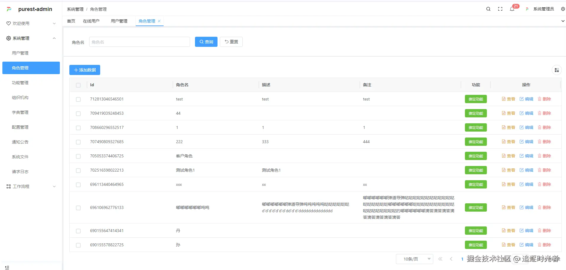 - 系统管理(组织架构、用户、角色、权限、功能、字典、配置等)