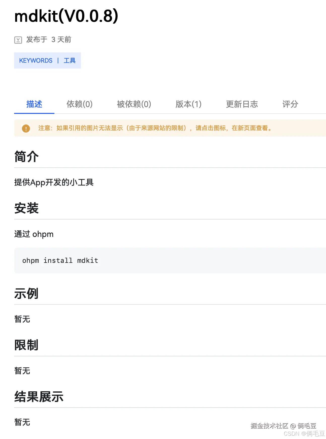 常见于包含简介、安装、示例、限制、结果等主要信息。mdkit的配置如下: