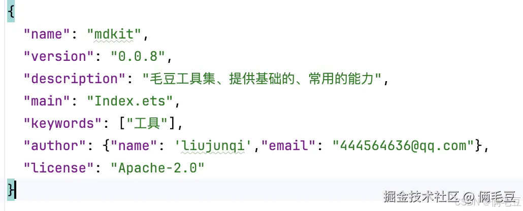 "license": "Apache-2.0", // 当前项目的开源许可证。