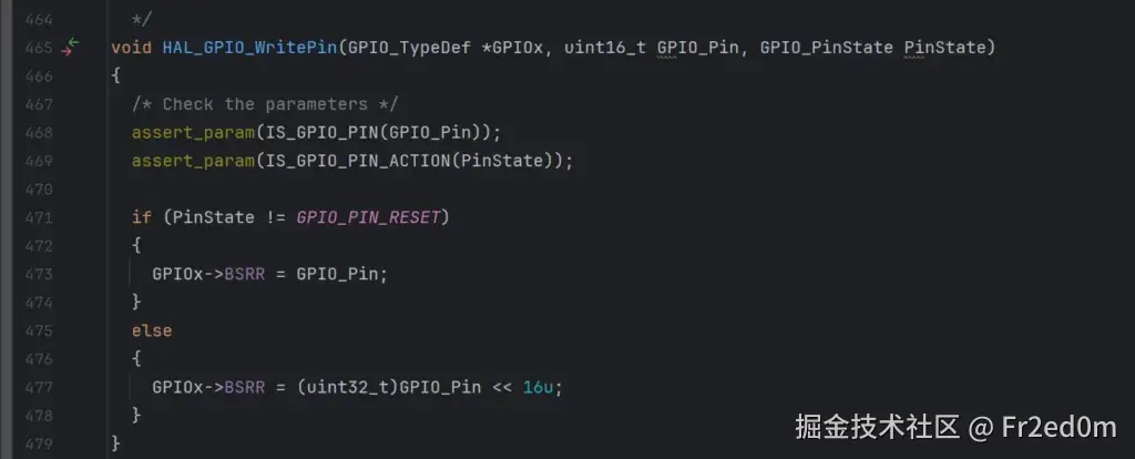 类似于我们常用的 HAL_GPIO_WritePin,内部代码如下