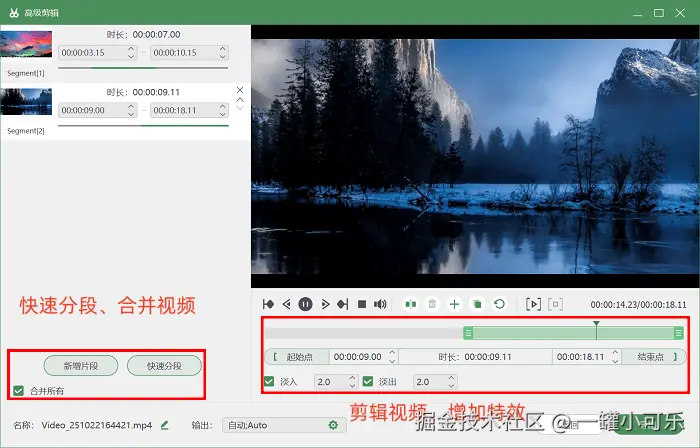 步骤3:录制结束后,软件会自动跳转至视频预览界面,界面中会同步显示视频的时长、分辨率等基础信息,用户可在此快速确认录制效果是否符合预期。若需对视频进行后期优化,可以点击预览界面中的 “高级剪辑” 按钮,进入编辑页面完成相关操作。