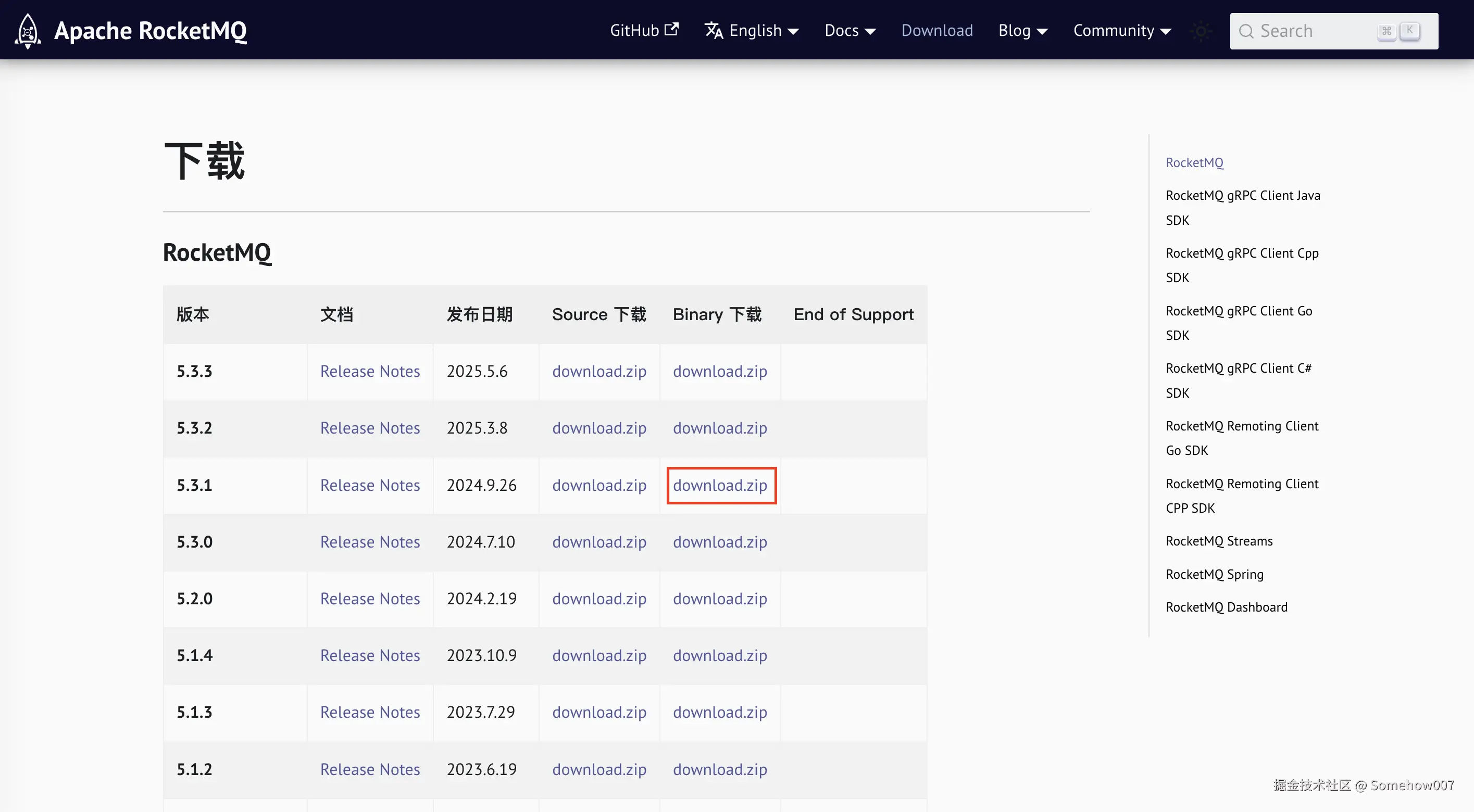 此处我们选择二进制版本进行下载,source 源码版需要进行编译,binary 二进制版开箱即用,快速上手。