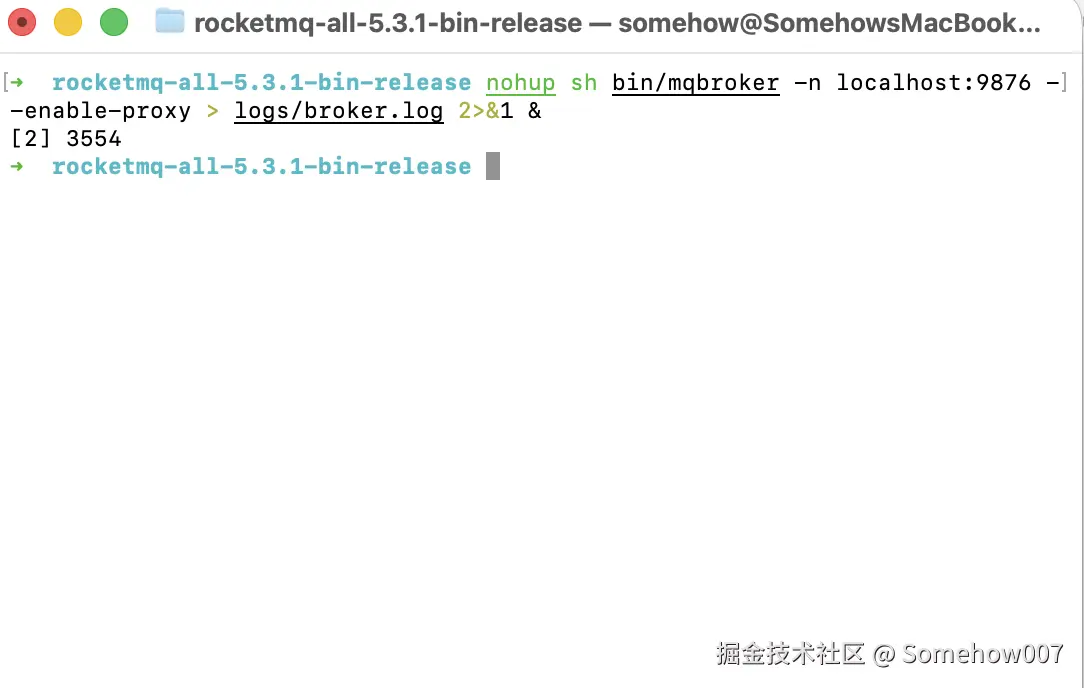 nohup sh bin/mqbroker -n localhost:9876 --enable-proxy > logs/broker.log 2>&1 &