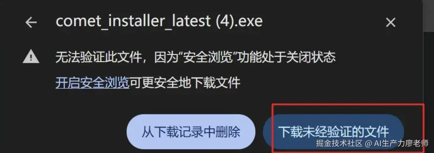 人机验证通过后就会提示你下载一个“comet_installer_latest.exe”