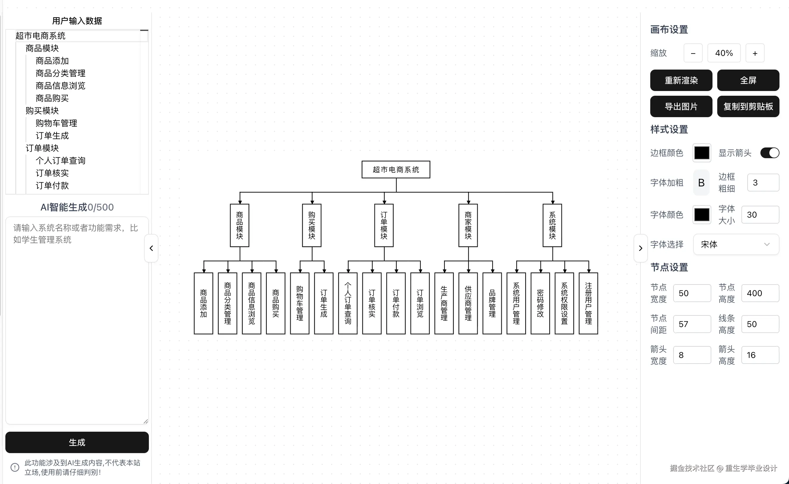 本文将介绍如何在功能结构图中,为节点动态添加箭头,并支持开关隐藏箭头的功能。先给大家看一下功能结构图的效果吧,在网站tools.anqstar.com/tools/struc… 就可以使用改功能,可以自己手动输入节点就自动生成功能结构图,也可以使用AI生成,下面是图片展示效果: