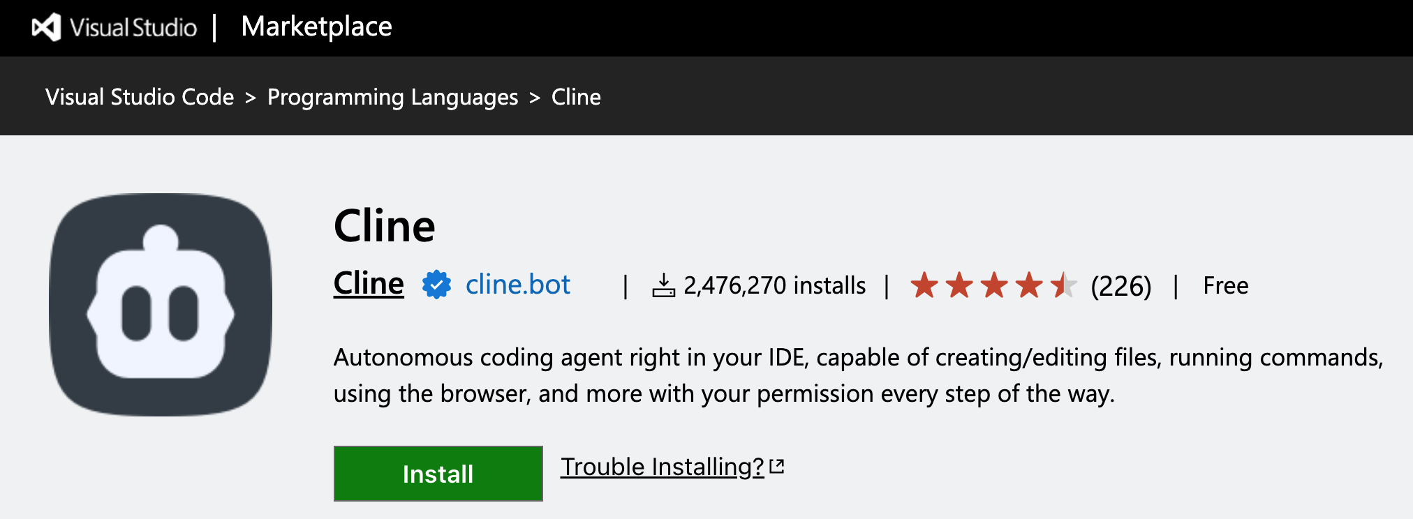 本文列举了 VS Code 市场中 AI 部分的顶级扩展程序,这些扩展在其描述中包含"agent"或"agentic"字样,按安装量排序。由于我们仅搜索这些关键词,来自 GitHub 的前沿工具(如 Copilot、Copilot Chat 和 Pull Requests)虽然领先整体排行榜,但未能入选本次评选。这些工具显然具有智能体功能,例如代理模式等,但由于未包含这些魔法词汇,因此不符合本次评选标准。
