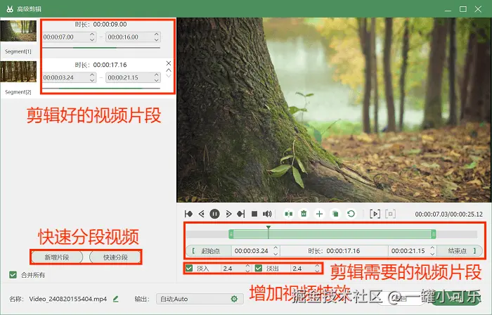 步骤3:录制结束后,在预览页右下角可以选择 “高级剪辑” 工具,对视频进行编辑。比如快速分段视频、剪辑需要的视频片段、增加视频特效等,按个人需求剪辑就可以了。