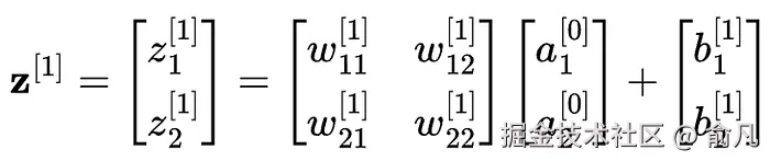 例如,在我们的神经网络示例中,这里是如何计算第一层(i=1)的 z 的值的: