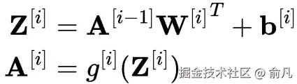 Z和A现在是矩阵形式,每一行代表一个样本。- 通过 (权重矩阵的转置),以使维度匹配。