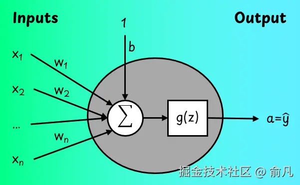 然后通过激活函数g(z)变换输出值z。该函数帮助网络学习非线性模式。神经元的输出称为激活a,在只有一个神经元的情况下,也是模型的输出预测。