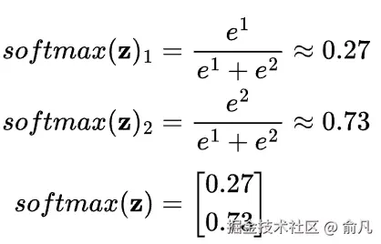 对于 z = [1, 2] 的 softmax 计算结果为: