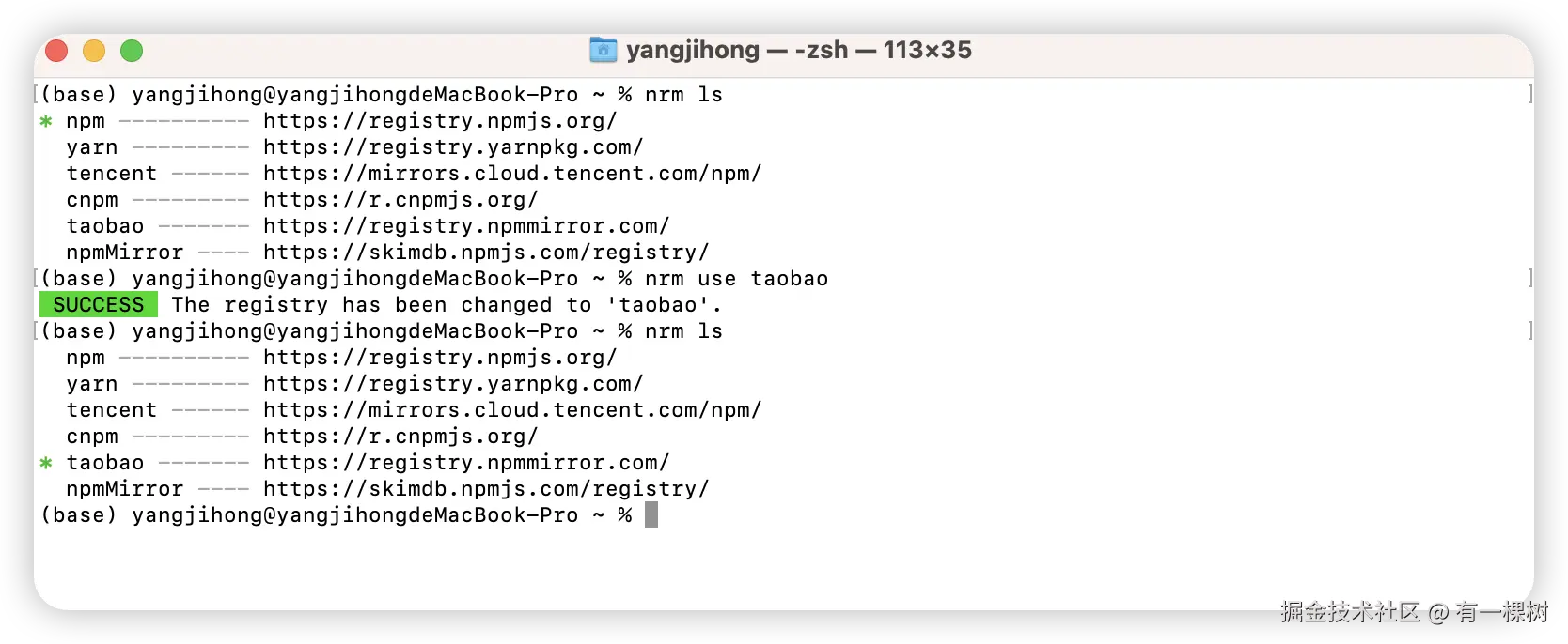 使用 nrm 进行镜像管理,有的时候一个镜像很慢,我们通过 nrm 可以快速的切换,你安装完 node 之后,直接使用 npm 命令全局安装即可。