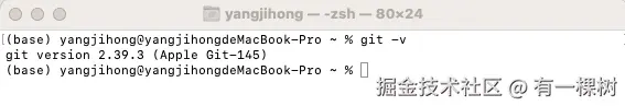 安装完成之后,你在终端输入git -v,可以打印出当前版本,就代表安装成功。