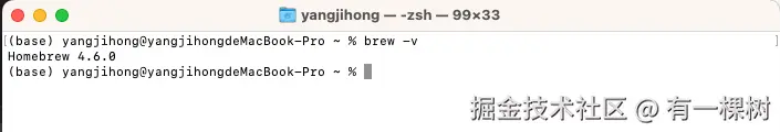 安装完成之后,你在终端输入brew -v,可以打印当前版本,就代表安装成功。