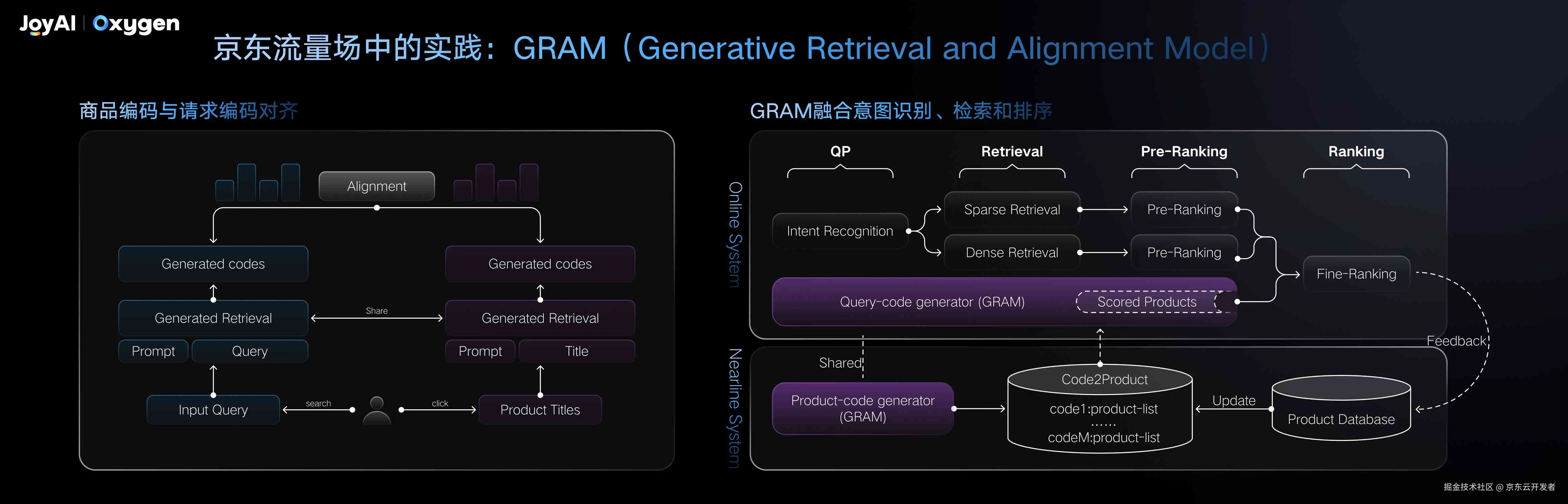 更重要的是,GRAM 不是 “一次性匹配”,它还有 “近线系统(Nearline System)”:会通过用户反馈(比如点击、购买)不断更新 “商品编码库”,让匹配越来越准。比如用户搜 “轻薄防晒衣” 但买了带冰感的,下次就会优先推冰感材质的 —— 真正实现了 “意图识别、检索、排序、机制” 几者融合,让服务既快又准。