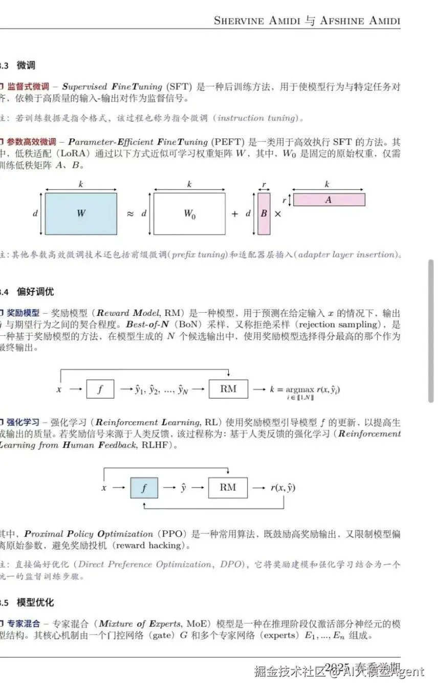 - 大语言模型 (LLM):提示 (prompting)、微调(SFT、LoRA)、偏好调优、优化技术(混合专家模型、知识蒸馏、量化)