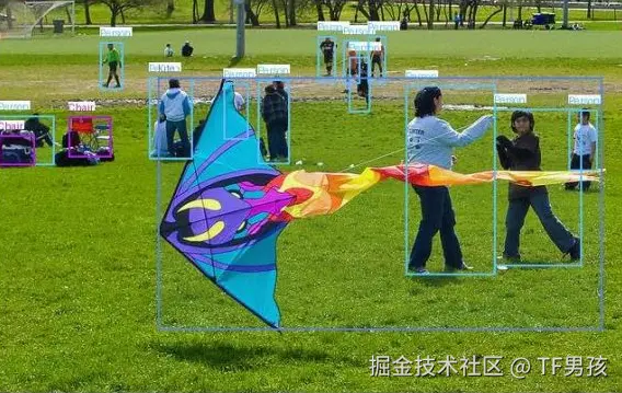 它要把上下文压缩,它就需要对这个世界有个基础的认识。例如,让它在下面这张图片上框出看到的物体,它能清晰地找到“人”、“椅子”等物体。