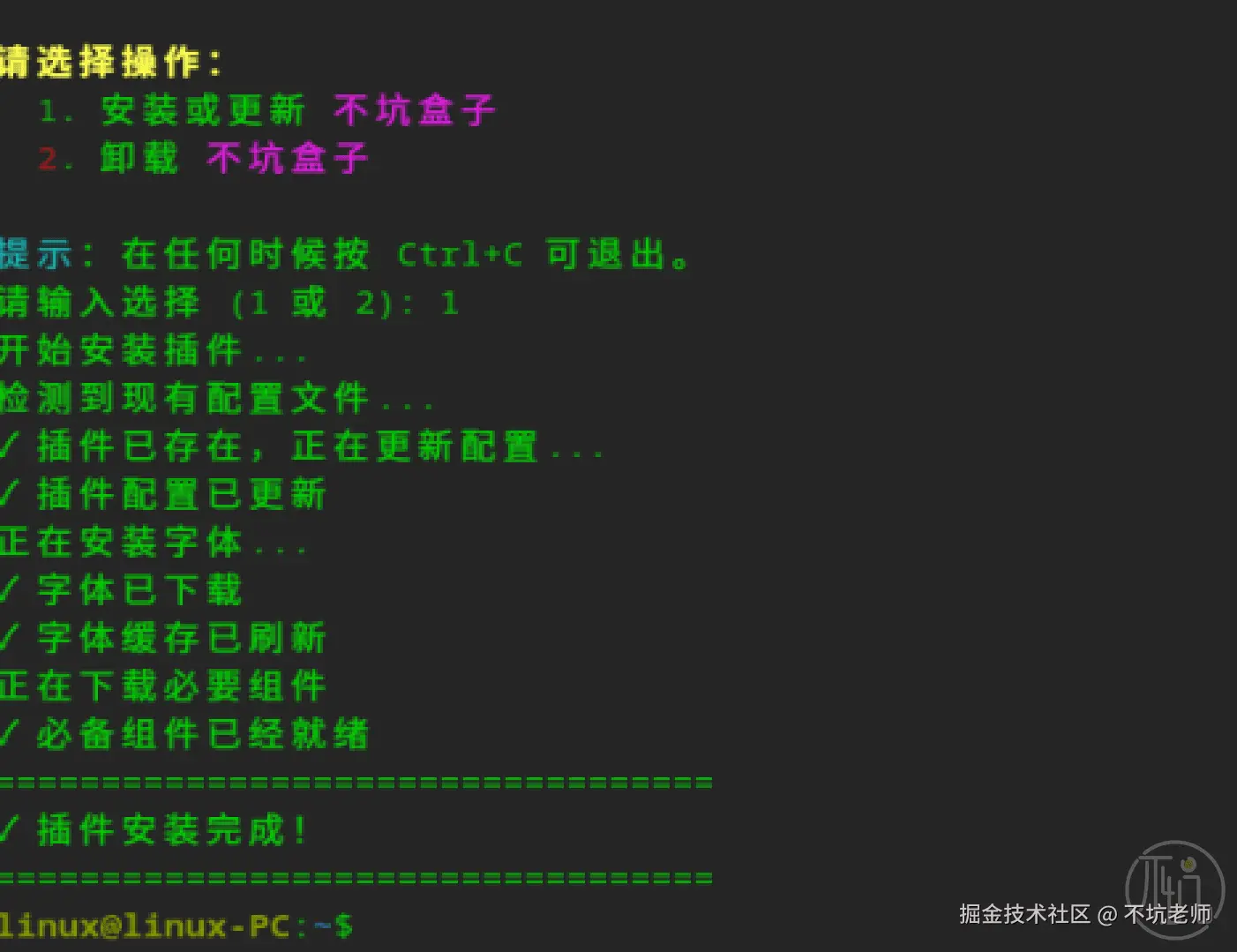 你只需要输入1或者2即可实现安装和卸载。