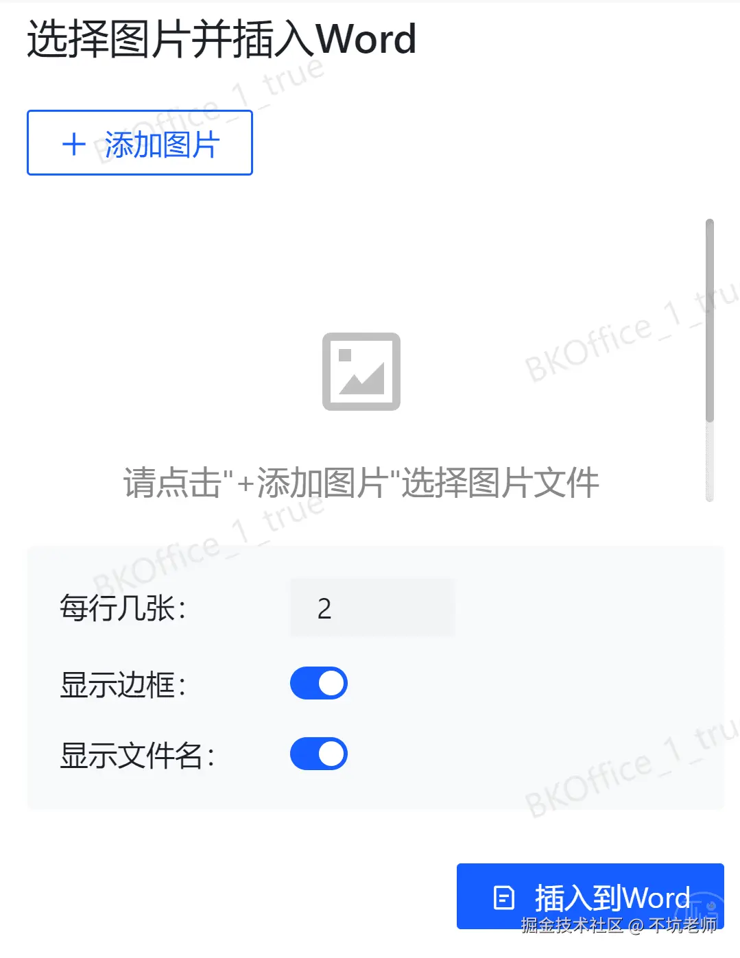 曾经的一键插图使用者只能控制要插入的图片,而不能控制表格的边框和是否显示文件名;如今,它有了更多可以控制的选项。