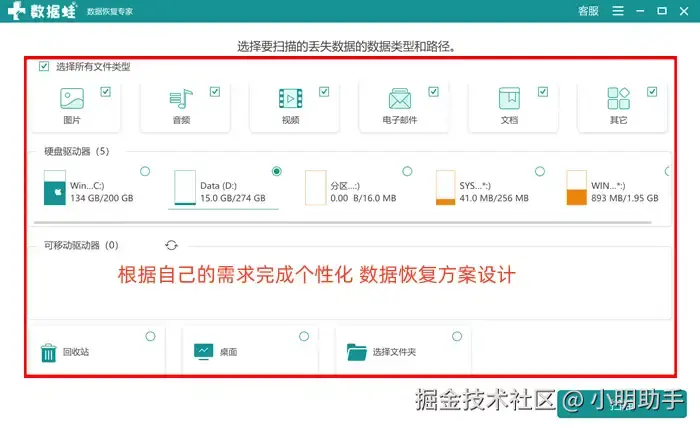 删掉的文件怎么恢复?优加蛙恢复大师具有简洁的软件页面设计,同时也拥有值得信赖的文件扫描能力。电脑上不小心永久删除了怎么恢复?删掉的文件不在回收站怎么找回?优加蛙恢复大师可以帮助我们进行多样的数据恢复:回收站数据恢复、硬盘数据恢复、分区问题数据恢复、储存卡数据恢复、闪存驱动器数据恢复、系统崩溃数据恢复。