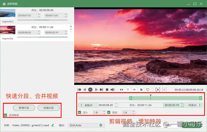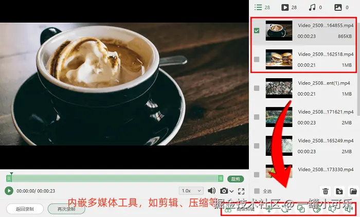 步骤3:录完视频别着急点保存!数据蛙录屏软件自带 “高级剪辑” 功能,能帮你快速优化视频。比如录制开头有多余的准备操作,或者想把长视频拆分成多个短片段,都能直接在剪辑界面拖动时间轴就能精准裁切,操作起来特别直观。
