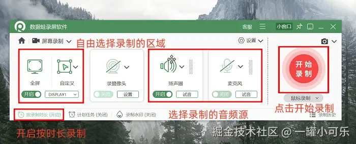另外,要是担心后续忘记手动停录,还能提前在设置里开启 “按时长录制” ,设定好目标时长,到点软件会自动停止录制,不用一直盯着。所有设置确认无误后,点击 “开始录制” ,就能进入录制状态啦!