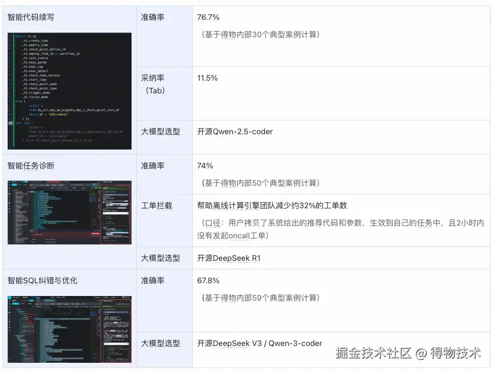 目前Galaxy研发平台已经落地了智能代码续写、智能任务诊断、智能SQL纠错与优化3个Copilot应用,具体业务效果如下: