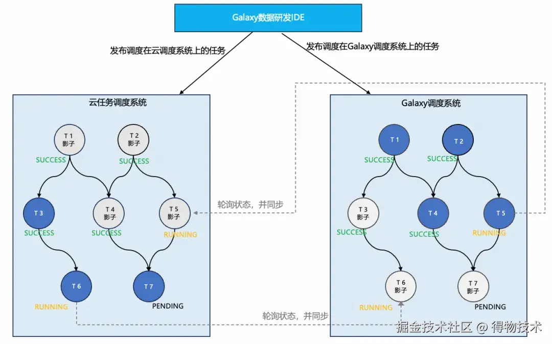 因此架构上一套研发平台需要同时适配两套调度系统(云任务调度+Galaxy自研调度系统 ),并支持逐步往自研Galaxy调度的平滑演进。
