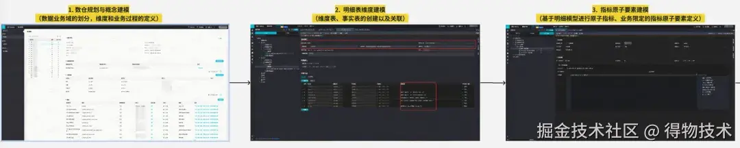目前已完成数仓规划->概念建模->明细表维度建模->指标建模->指标代码自动化生成->汇总表代码自动化生成的Onedata规范建模研发全流程,产品效果如下: