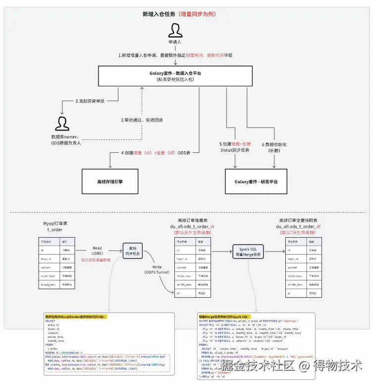 离线数据同步的具体实现执行流程(以MySQL同步至得物自建离线存储系统为例):