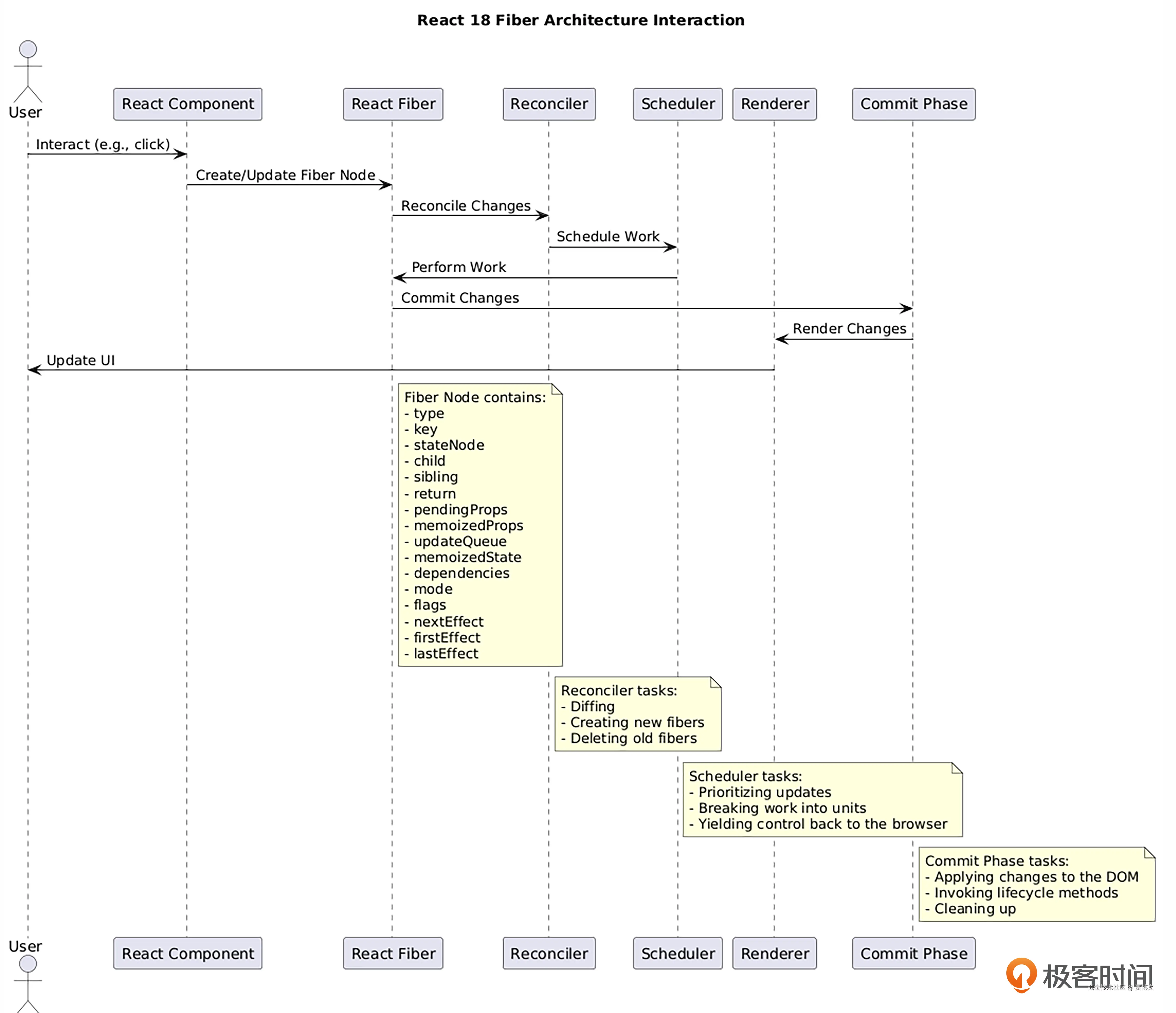 Fiber 架构改进了 Reconciler 的工作方式,使其能够更高效地处理 UI 更新,特别是在大型应用和动画等场景下。