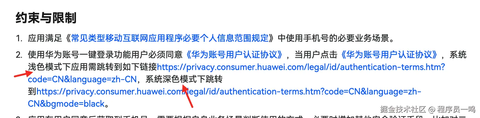 这种方式,说白了就是提供两个web页面,一个是浅色模式,一个是深色模式,我们检测到系统模式变化之后,动态的切换对应模式的页面即可,目前官方在某些功能里,也在使用这种方式,比如官方的一键登录功能,我们就可以发现,针对《认证协议》,就提供了一个浅色页面和一个深色页面。