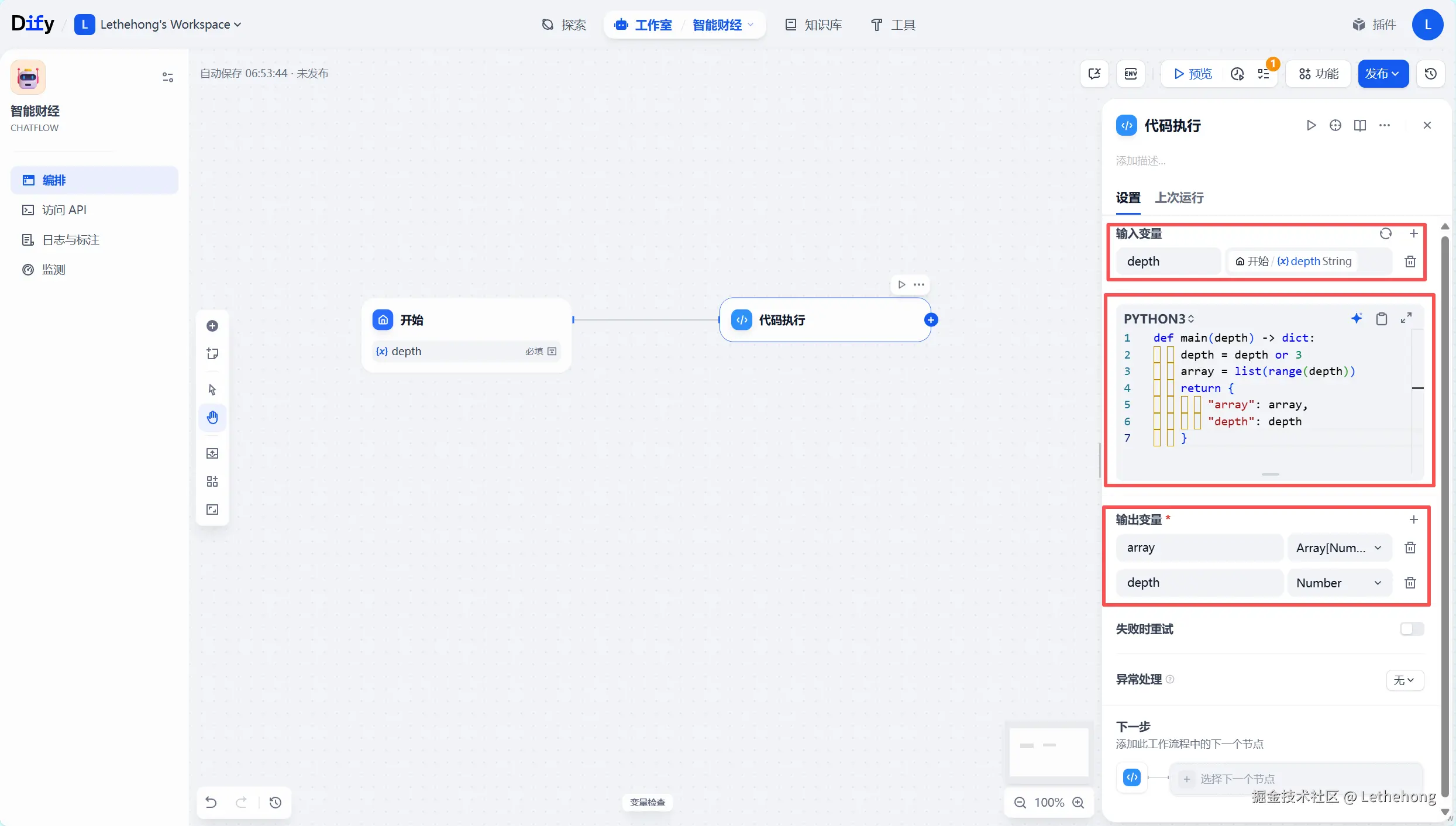 在开始节点处,设置研究深度参数,该数值决定了研究的迭代次数和详细程度。