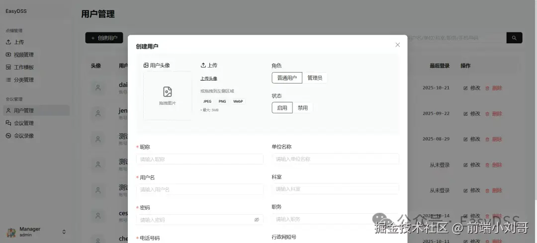 以前会议链接乱飞,外部人员随意进出,现在新版EasyDSS支持管理员与普通用户双角色权限,内部通讯录勾选即可参会,安全又高效。