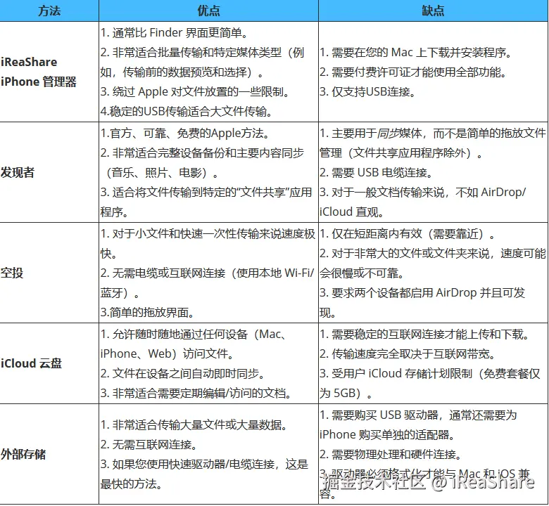 Finder 和 iReaShare iPhone Manager 是将大文件从 Mac 传输到 iPhone 以及从 iPhone 传输到 Mac 的最佳工具。它们允许您通过 USB 连接设备,并轻松导入/导出文件。如果您有 USB 闪存盘等外部存储设备,也可以使用它来传输大文件。