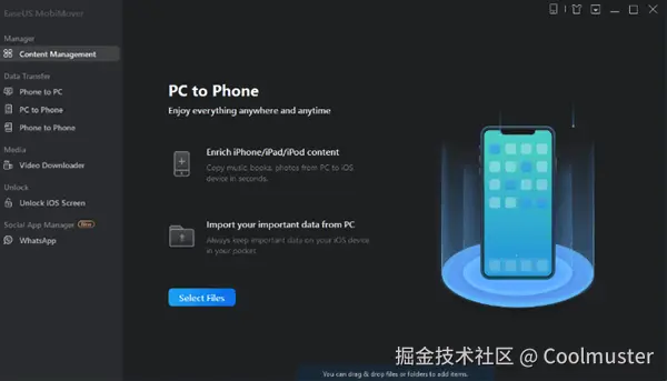 EaseUS MobiMover 是另一款出色的 iPhone 文件传输到电脑的软件。它还能让你将数据从一台 iPhone/iPad 传输到另一台。这款 iPhone 传输软件的一大优势在于,免费版还支持导出和导入文件。