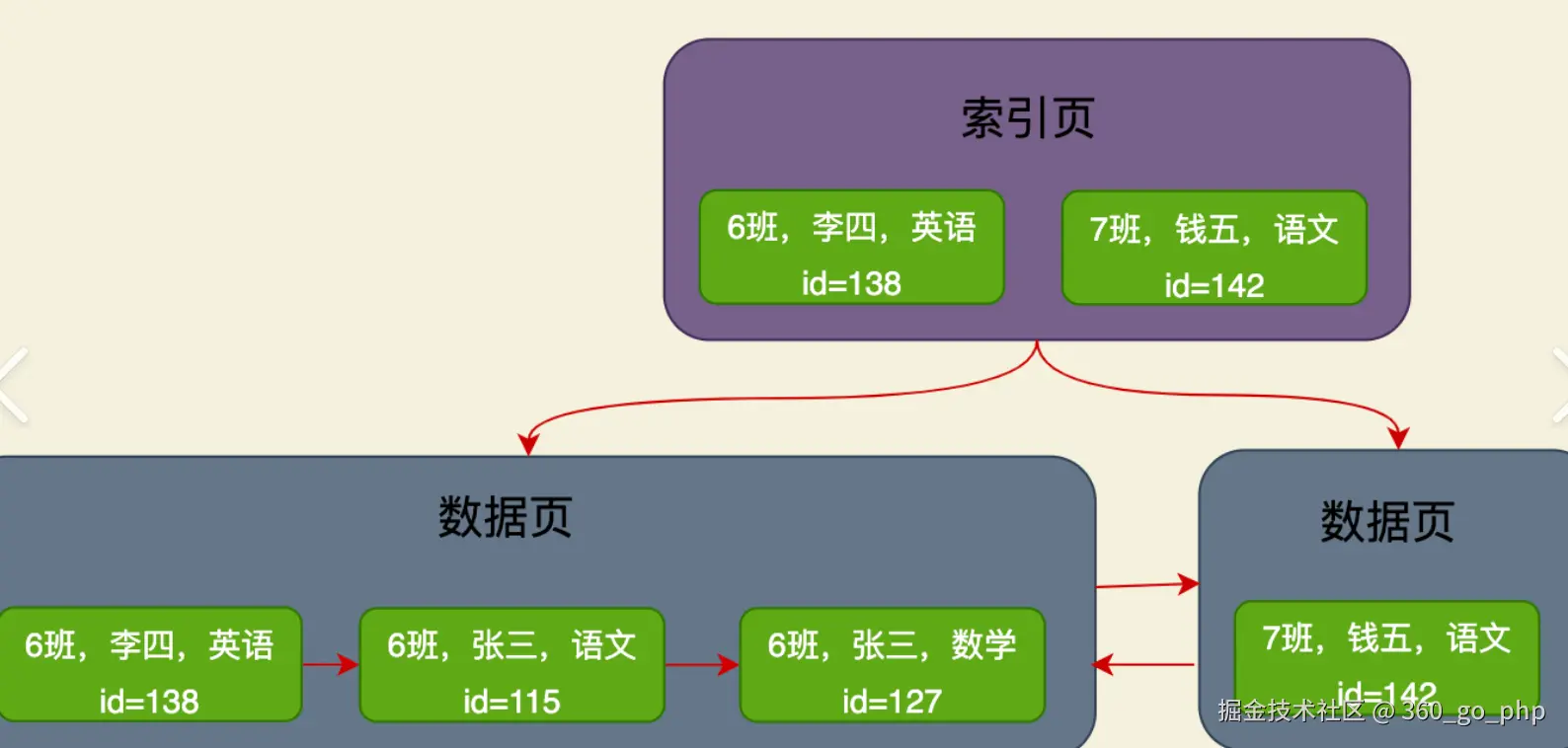 辅助索引(Secondary Index)叶子内容: