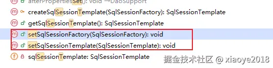 MapperFactoryBean继承了 SqlSessionDaoSupport, 里面包含几个set方法