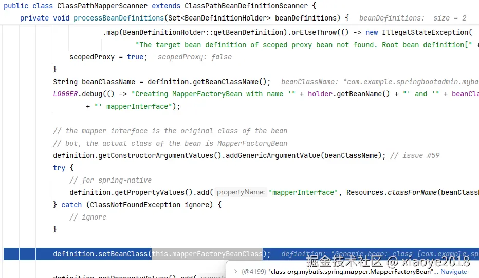 把接口类扫描出来, 生成 MapperFactoryBean beanDefinition