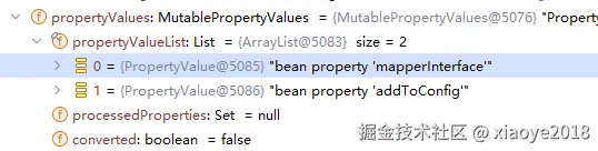 这里的beanDefinition只设置了两个PropertyValue