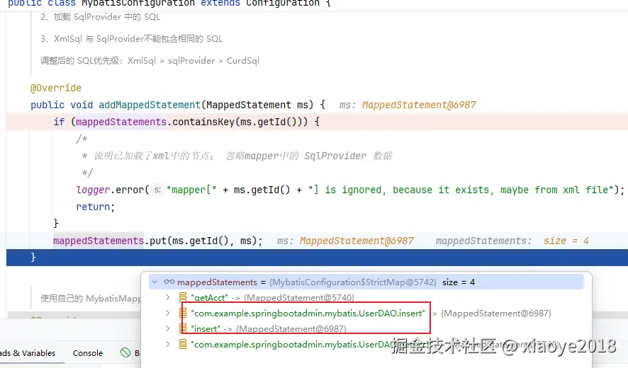 这里的逻辑实际上跟前面解析XML部分后期解析Mapper接口对应的逻辑是一样的。最终生成MappedStatement到MybatisConfiguration中
