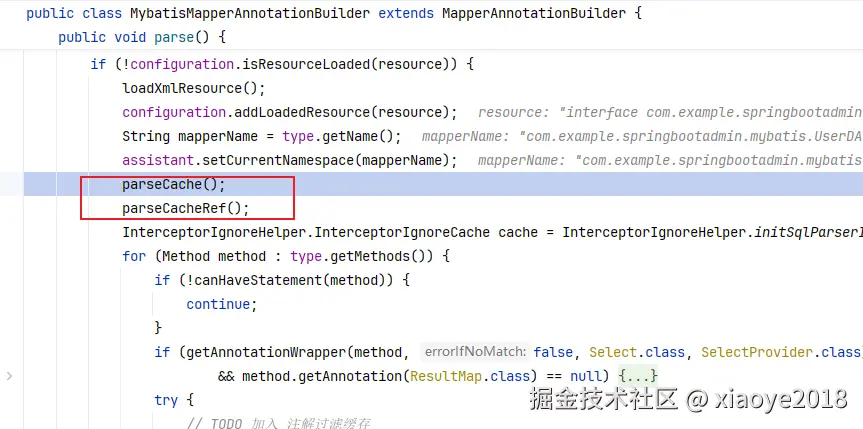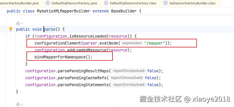 XMLMapperBuilder#parse: 解析mybatis的Mapper 配置文件。如果没有配置则不会走这里的逻辑