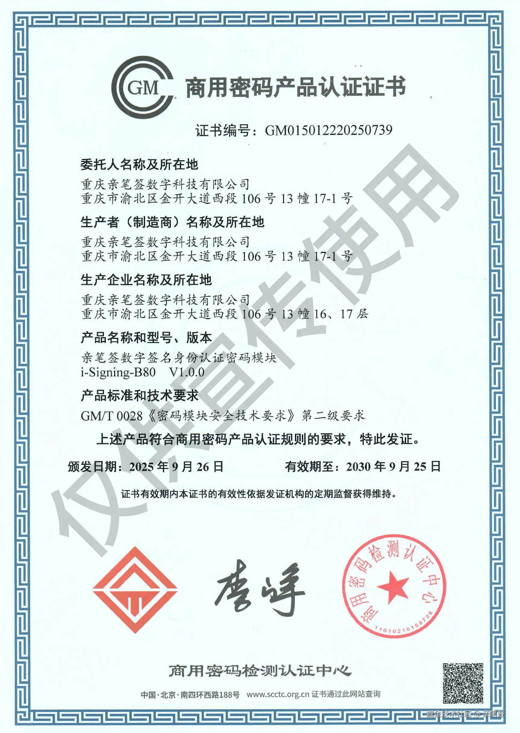 近日,亲笔签数字签名身份认证密码模块历经严格检测,荣获商用密码产品认证(证书编号:GM015012220250739),“笔迹即密码”的时代来了!