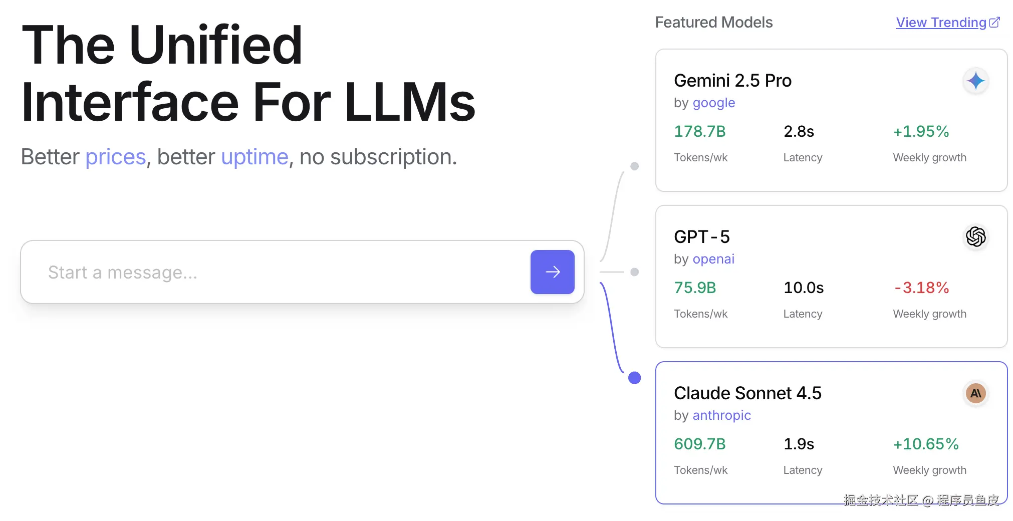 很多 AI 玩家第一个接触到的 AI 网关可能是 OpenRouter,它更像是一个 AI 模型的聚合平台,支持通过统一的接口对接几百种模型。
