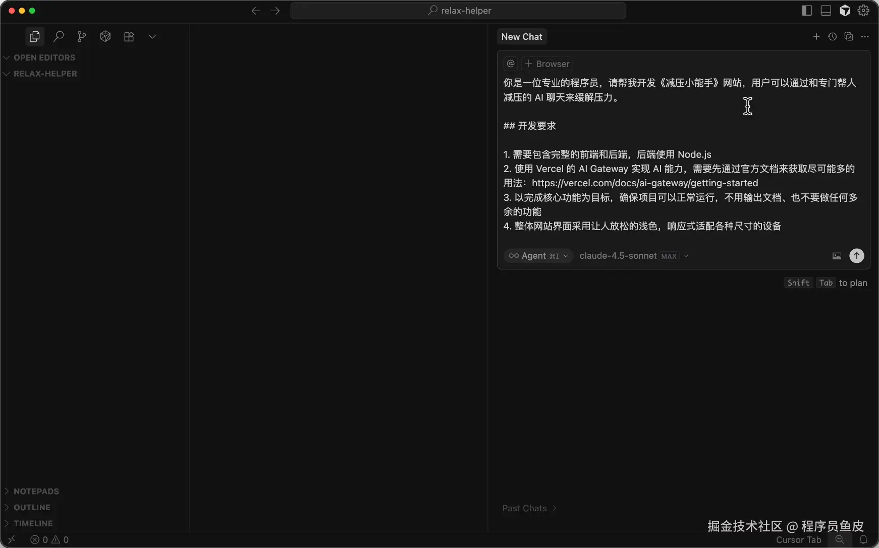 由于 Vercel AI Gateway 是比较新的玩意,AI 可能不理解它的用法,所以我直接把 Vercel AI Gateway 的官方文档扔给 Cursor,让他通过文档来学习用法。