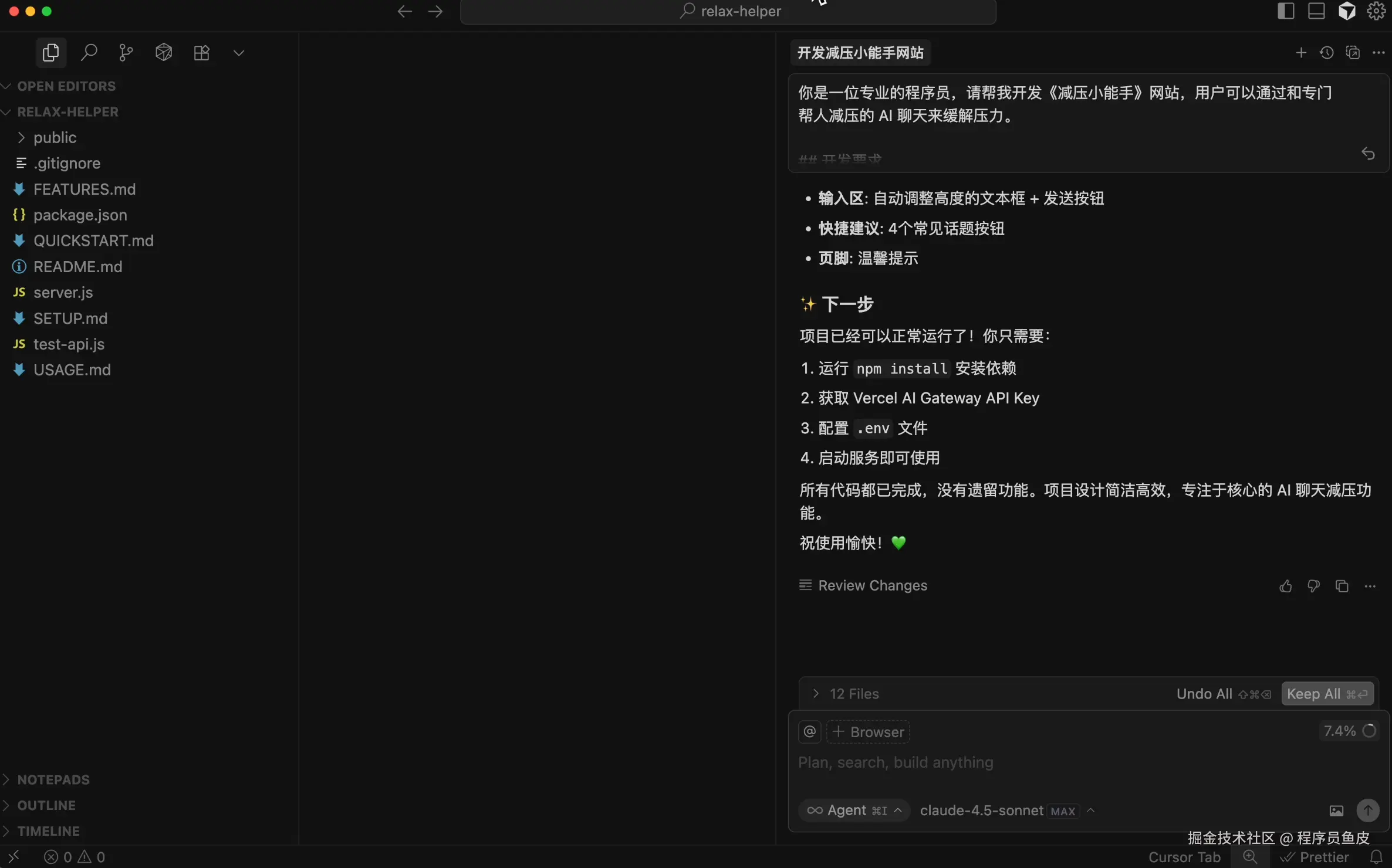但是官方提供的 Demo 有点过于简单了,我们不妨利用 AI 来做一个《减压小能手》网站项目吧,让用户可以和专门帮人减压的 AI 聊天。