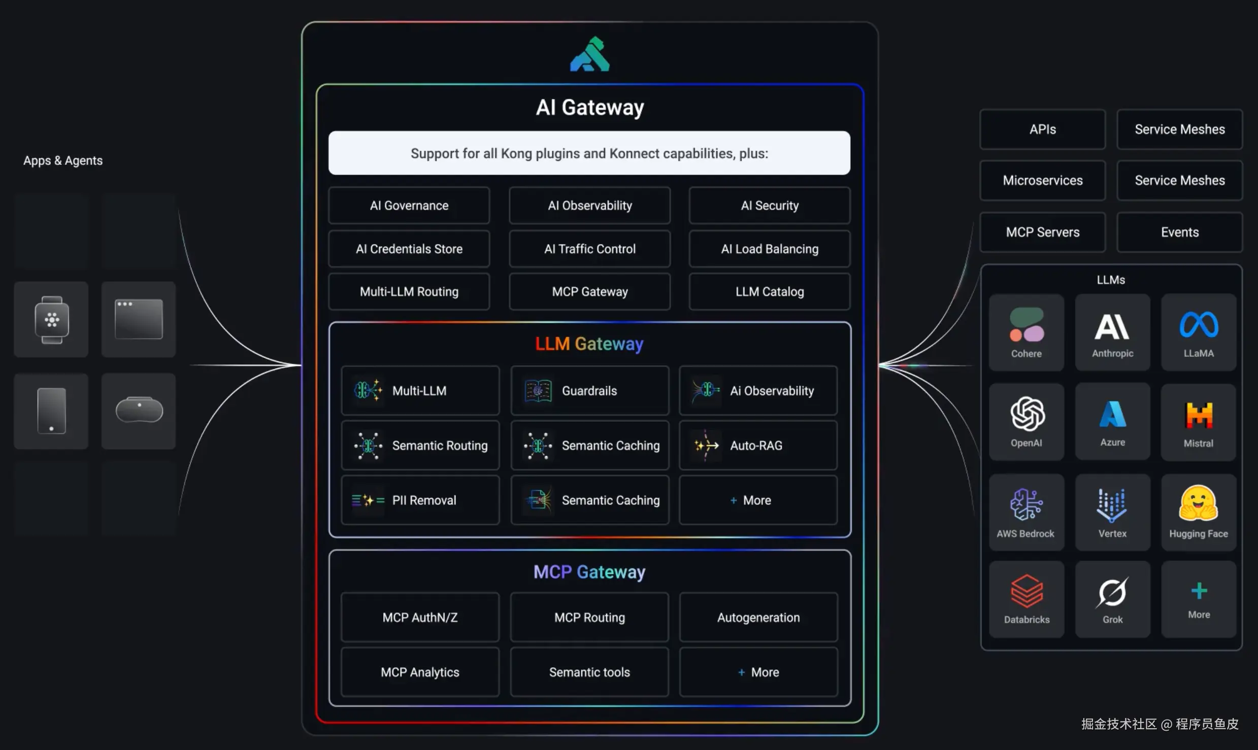 3)Kong AI Gateway:Kong 本身就是一个很成熟的 API 网关,现在专门为 AI 场景做了增强,企业级功能比较完善。
