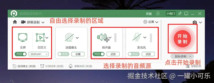 1、录制模式多: 全屏、自定义区域、锁定窗口、摄像头录制随便选,想录哪就录哪。