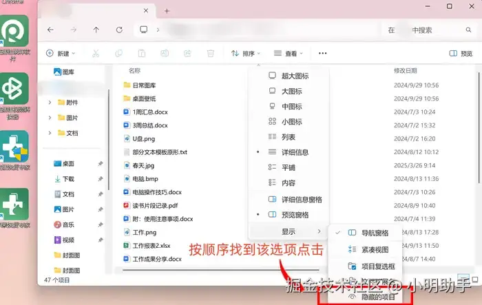 步骤2: 在显示的列表中点击【隐藏的项目】。