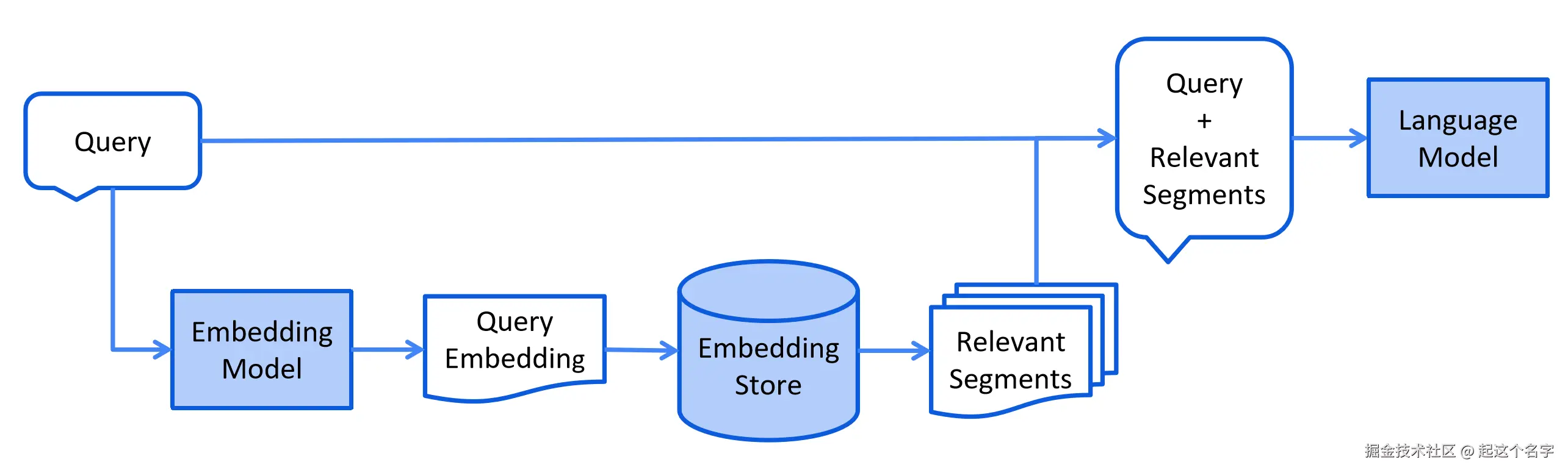 这个过程可能因使用的信息检索方法而异。 对于向量搜索,这通常涉及嵌入用户的查询(问题) 并在嵌入存储中执行相似度搜索。